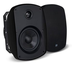 The Boston Acoustics SoundWare indoor/outdoor has a cute shape that makes it not only nice to look at but versatile when it comes to placement. With the included brackets it can be mounted under the eaves or on the deck. Tucked neatly away a corner, or simply stationed on a table. The brackets enable the speaker to be tilted up, down, and sideways, aimed at your current listening spot. This two-way speaker with has a 4 ½-inch woofer and ¾-inch tweeter.