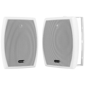 Each Yamaha NS-AW150WH speaker in this pair has built-in feet, perfect for placing on a table or shelf. If you’d rather wall-mount them, the included bracket allows for horizontal or vertical placement. Each speaker employs a 5-inch woofer and a 1/2-inch dome tweeter, so you can experience your music in full, from thumping bass to crystal-clear high notes. The speakers can handle 120 watts, and are built to withstand all that Mother Nature can dish out.