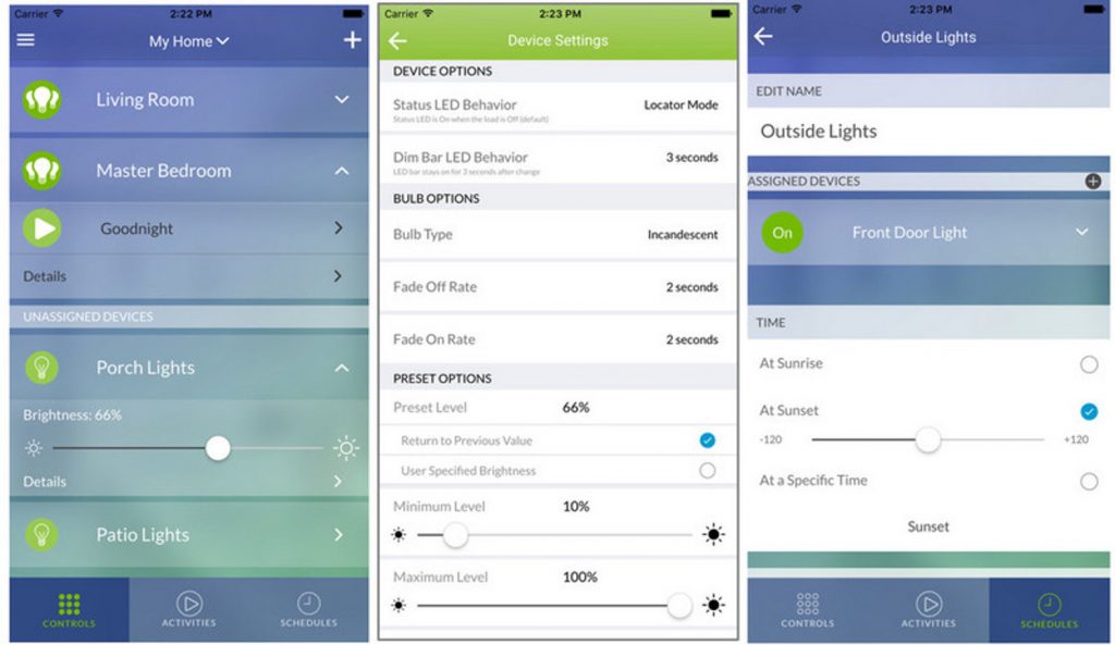 So how can you put your circadian rhythm back on track? The same smart light switches that respond to a command initiated from a smartphone can be programmed to follow an on/off scheduled that you create. Instead of letting the sun tell you when to sleep and when to wake, the scheduled light switches can dim at the same time each night to signal your body that it’s time to go to bed. In the morning, they can do the opposite, turning on at a bright level as a cue to get of bed. Check out Lutron, Leviton, Insteon, and Legrand for affordable, easy to install smart dimmer switches. These are widely available at home improvement stores like Home Depot and online at amazon.com