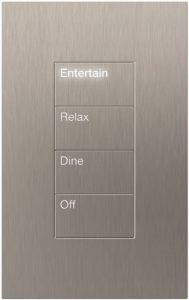 the residence for on the spot management of the home’s HomeWorks QS ecosystem. From any keypad, or from the Lutron Connect or Savant app, the owners can initiate lighting scenes for various activities like entertaining, relaxing, and sleeping. For each scene, the settings of the lights adjust automatically based on the time of day. For example, if the entertain scene is engaged at night, the lights will be brighter than when the entertain scene is activated during the day. Keypads also help the homeowners “shut down” parts of the home that aren’t in use.