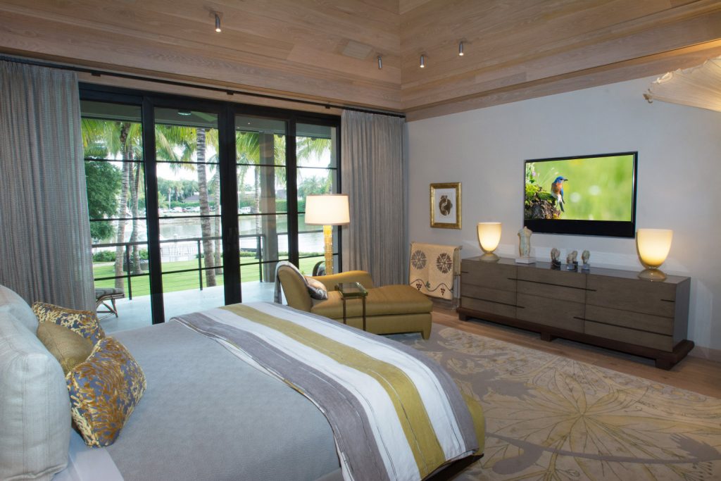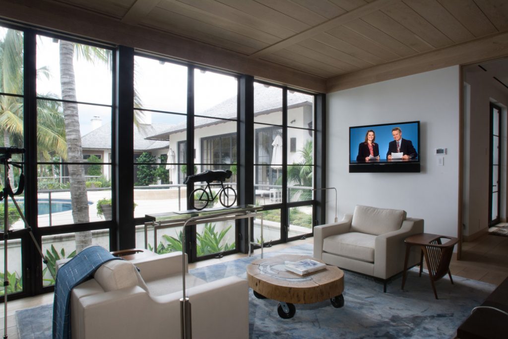 What would a game be without refreshments? At the rear of the home theater a fully stocked kitchen offers snacks and drinks … as well as a 75-inch Sony 4K TV that displays the same video feed as what’s on the 155-inch screen. There’s no chance of missing an important play as you grab a cold one from the fridge. The Just Add Power video distribution system delivers the action to all other TVs in the house as well.