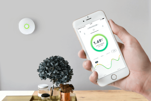 Even if you don’t use the smartphone app, you can still gauge the quality of the indoor air by waving a hand in front of the sensor, which looks like a smoke detector. A wave of a hand activates a visual indicator light: green means good, yellow is a warning, and red means danger.